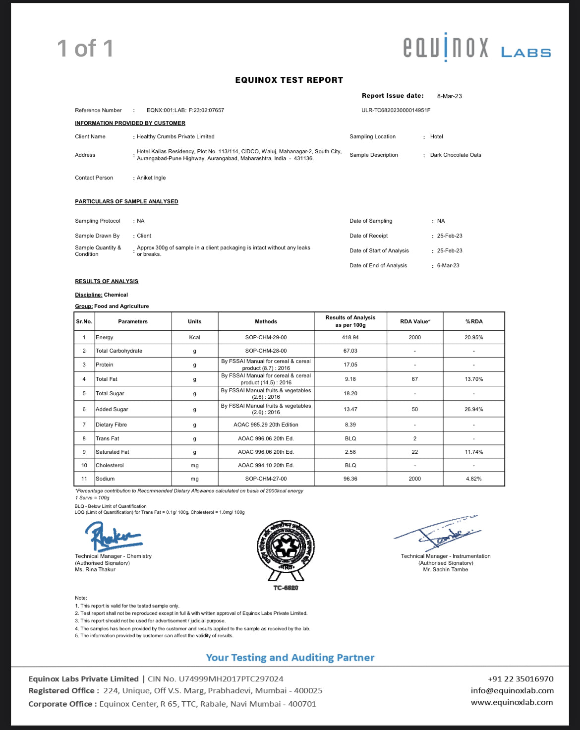 ![Dark Chocolate Oats 50g [Pack of 10]](http://www.healthycrumbs.in/cdn/shop/files/67030C15-3D56-4DB9-92F6-61D2D7EC7D58_1445x.png?v=1686726196)